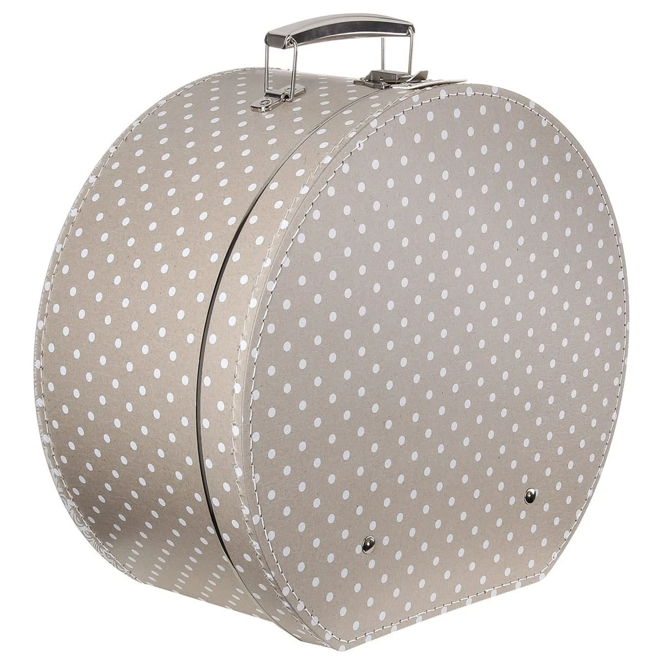 Der robuste Hutkoffer kommt mit einem zeitlosen Pünktchenmuster und in hochwertiger Verarbeitung.