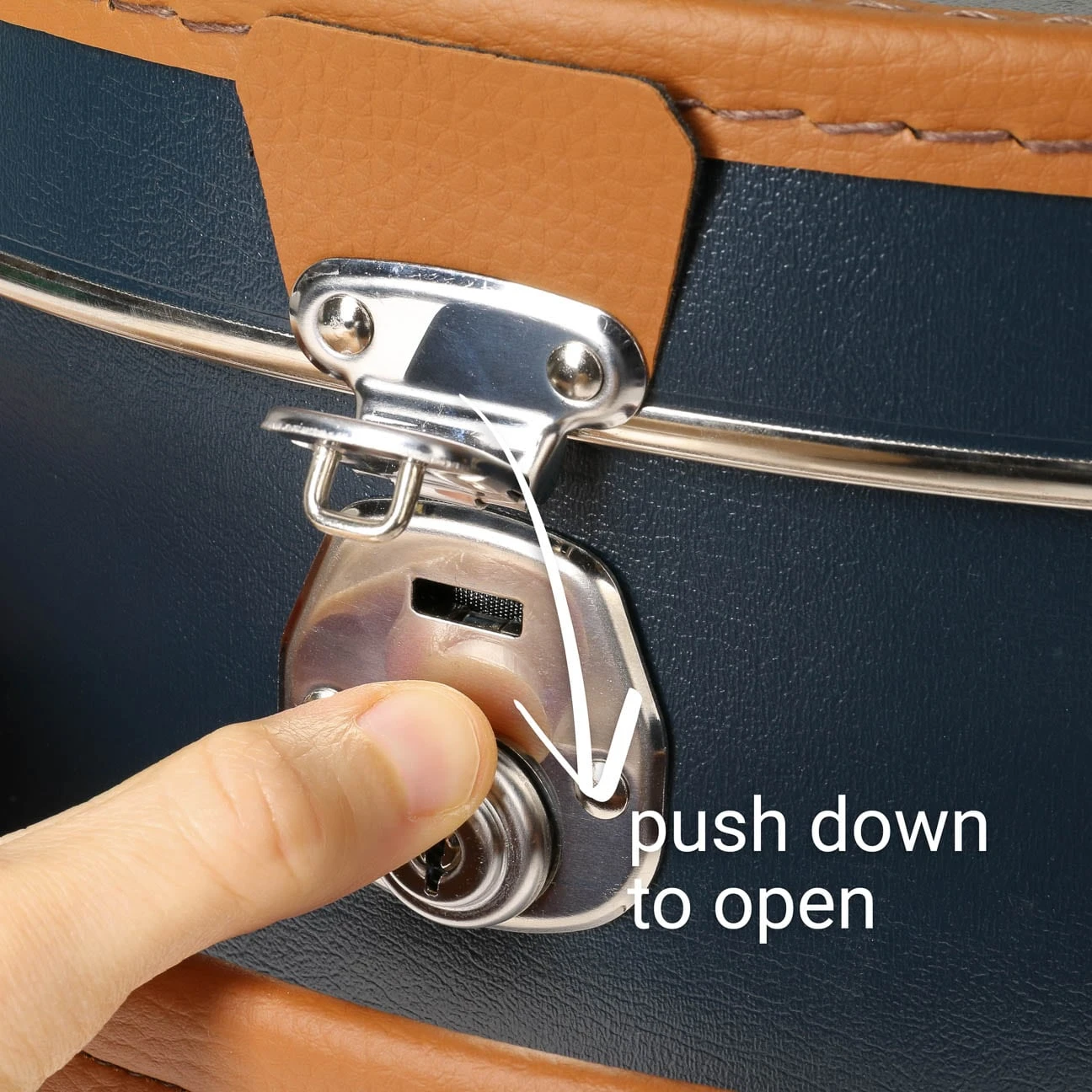 Dieser robuste Hutkoffer aus Kunstleder mit praktischen Tragegriff.