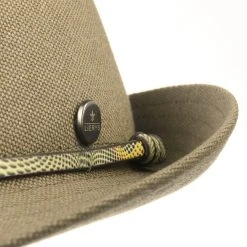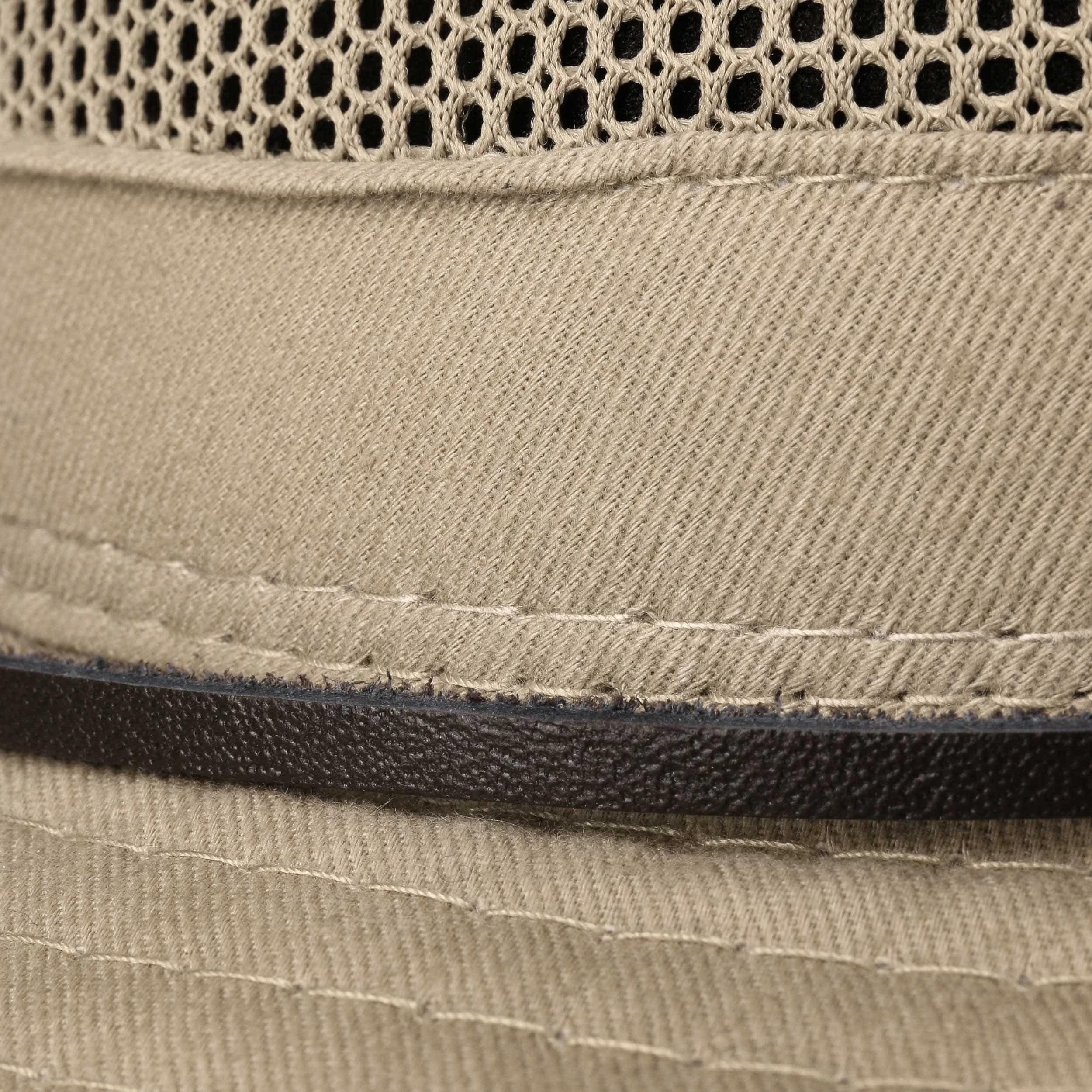 Durch den knautschbaren Netzeinsatz rund um die Kopfkrone zirkuliert frische Luft, während das lederne Kinnband den Sommerhut auch in windigen Zeiten sicher auf dem Kopf hält.